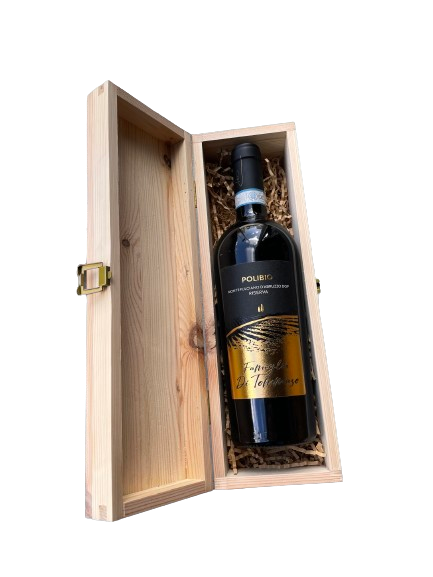 Introducing the elegant POLIBIO #1 GIFT BOX from FAMIGLIA DI TOMMASO! A perfect gift for connoisseurs, featuring exquisite wine presented in a stylish wooden box.